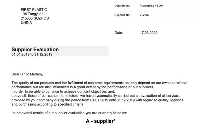 環境保護一直是人民關注的熱點話題,也是黨和國家高度重視的問題,打造“綠色品牌“”更是富事達奮斗的目標。蘇州富事達塑業2019年年初開始,為某外資新能源企業提供環保可循環使用的塑料物流包裝,為客戶的包裝方案帶來了很大的便利,同時也節省了大量的物流費用。經過一年的合作,富事達榮幸的被客戶評定為“A級供應商”。